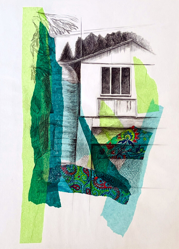 « La maison des îles-variation 1 » / techniques mixtes sur papier / 30x40cm